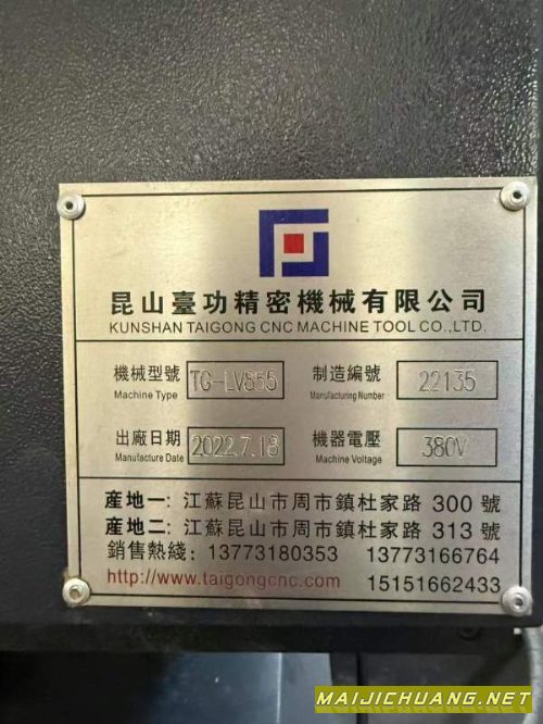 台功855加工中心,法纳克MFplus系统,主轴皮带10000转,三轴重型45线规,后冲水排屑,带油冷机,2022年出厂,安装少用,可加装刀库,价格便宜!
